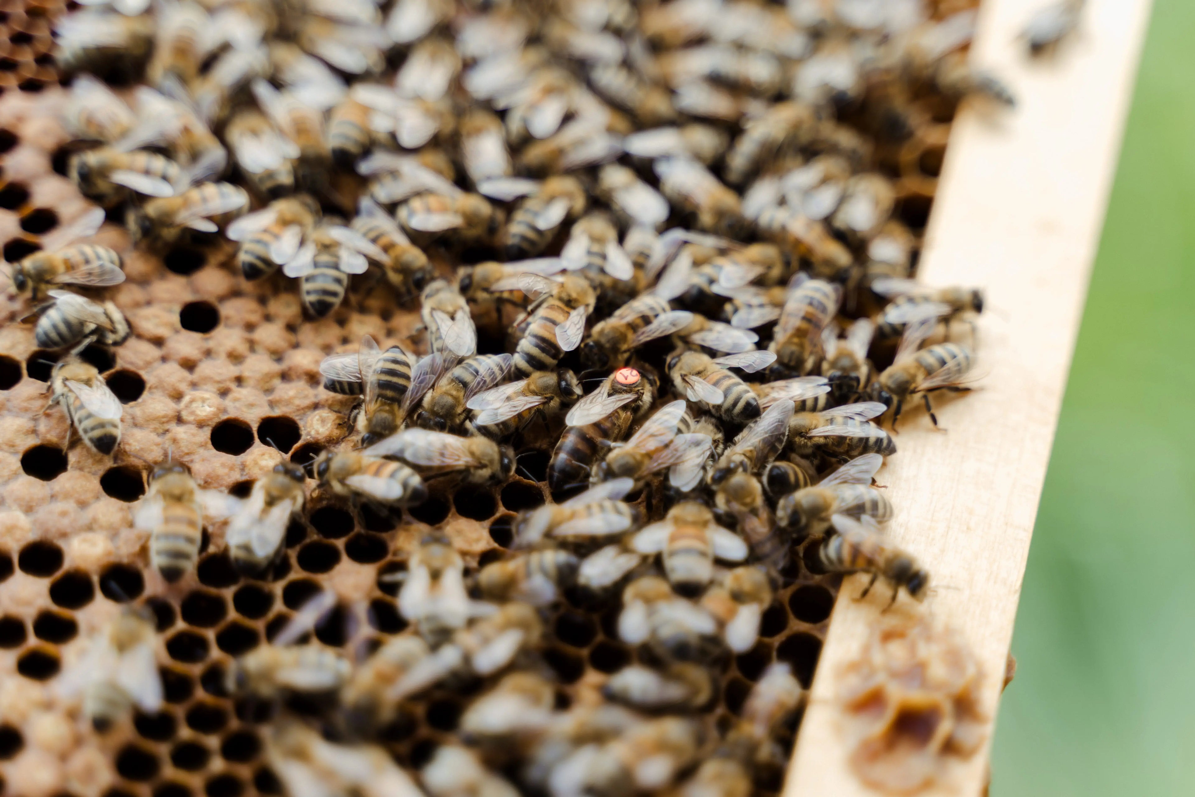 Ein Bienenvolk besteht aus bis zu 60.000 Bienen. Und jede hat ihre Aufgabe: Es gibt Sammlerinnen, Wächterinnen, Baubienen, Ammenbienen – und natürlich die Königin. Sie legt bis zu 2.000 Eier am Tag und sorgt so für den Fortbestand des Volkes. Die Kommunikation im Stock erfolgt übrigens über Tänze und Duftstoffe – total abgefahren!