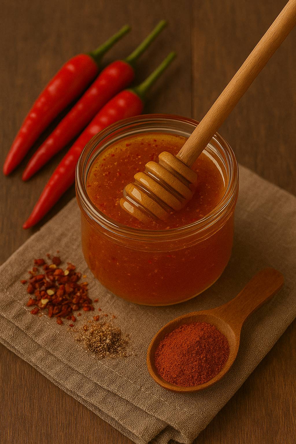 Für alle, die es gerne scharf mögen, ist Chili in Honig die perfekte Wahl! Die süße Schärfe verleiht BBQ-Saucen, Marinaden oder asiatischen Gerichten eine feurige Note – ein Muss für mutige Geschmacksnerven!