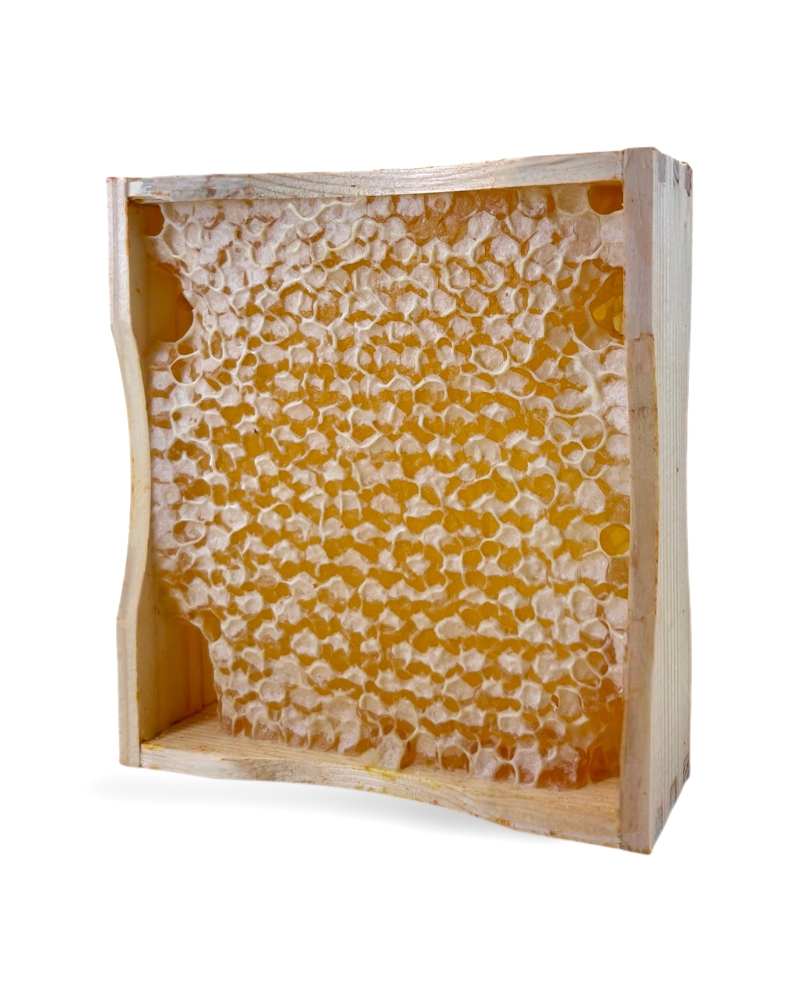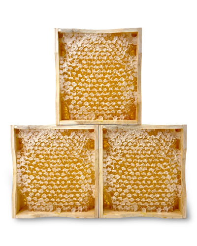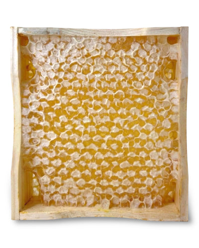 Unser Wabenhonig stammt direkt aus unseren Bienenstöcken und die kleinen Holzrähmchen werden komplett von Hand geerntet. Er enthält nicht nur reinen, naturbelassenen Honig, sondern auch die zarte Bienenwabe selbst – gefüllt mit unversehrtem Naturhonig. In der Wabe stecken Enzyme, Wachse, Propolis, Pollen und mehr.